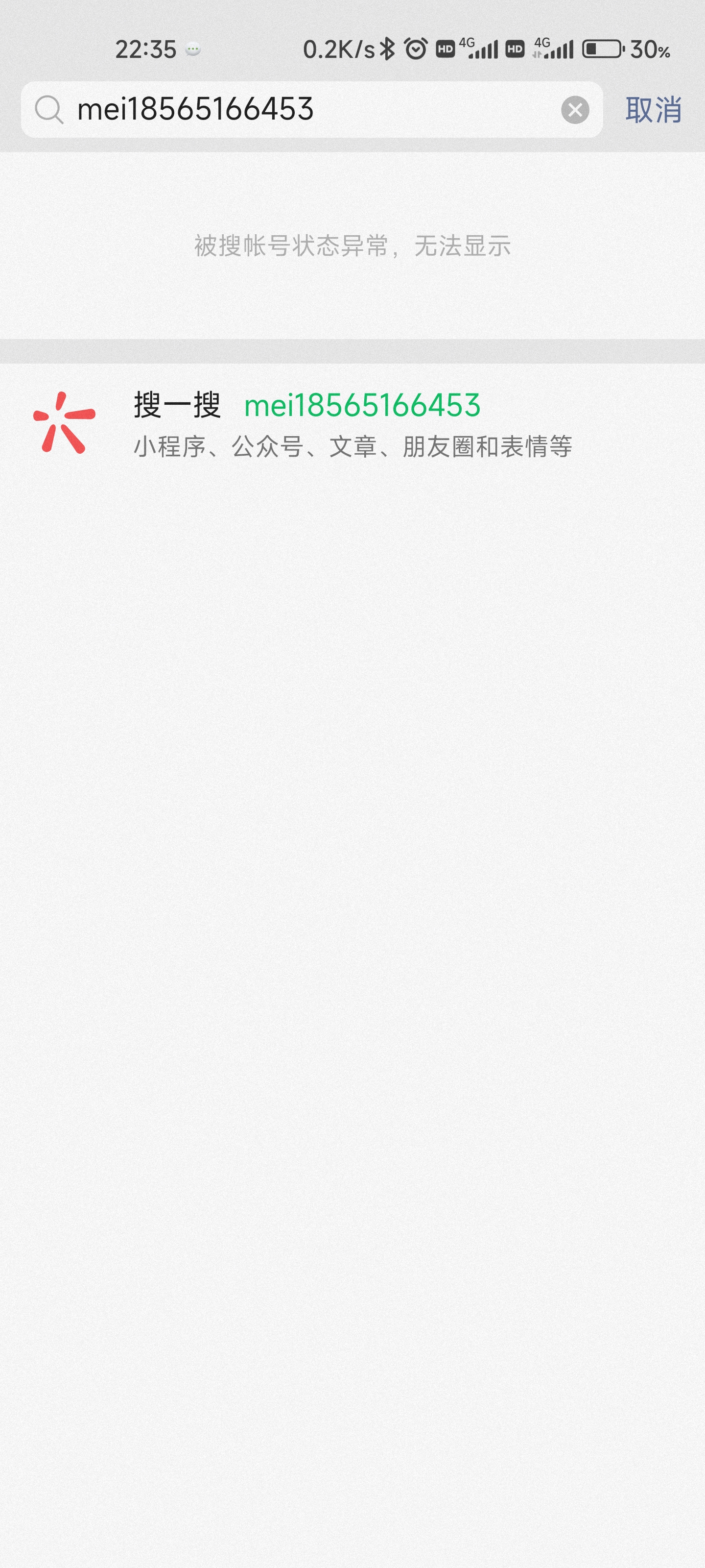 账号搜索异常 已退回