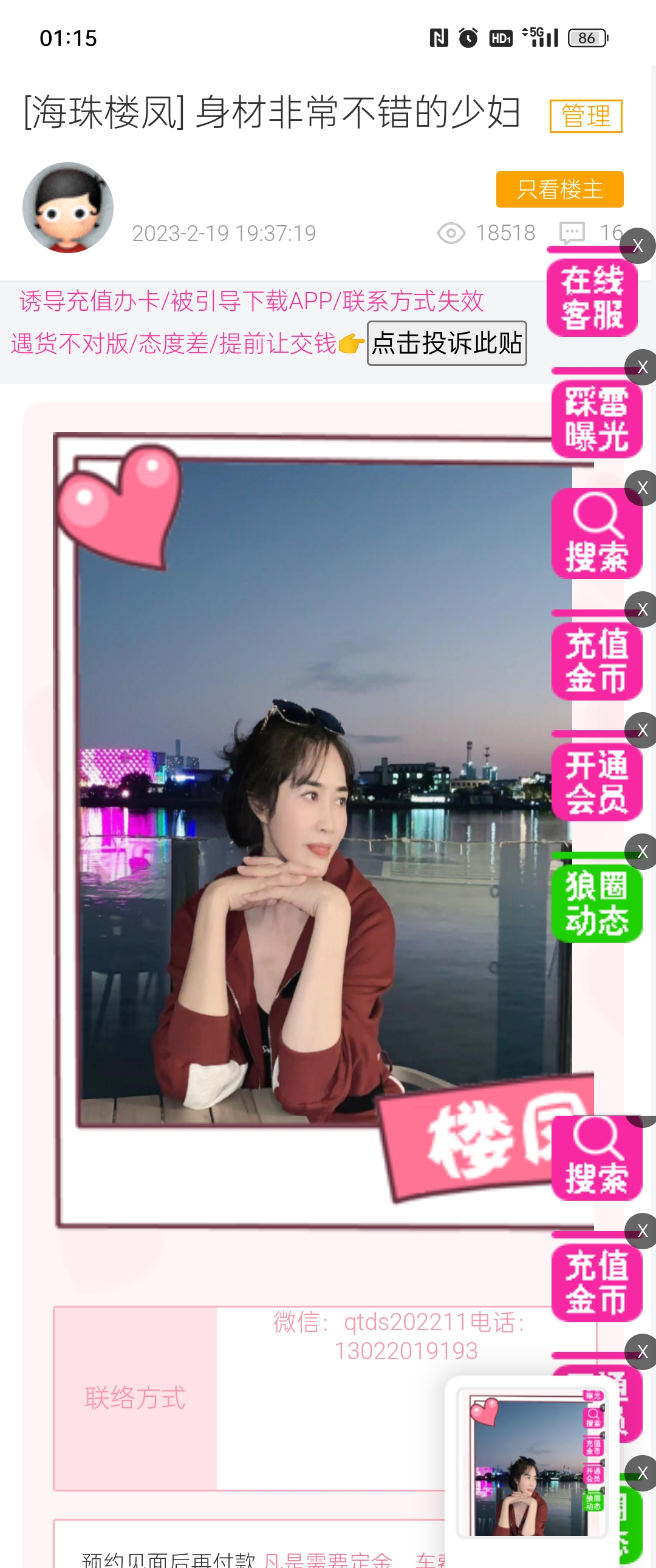 微信搜索不到,电话是空号 帖子链接:https://qingloutoutiao.com/forum.php?mod=viewthread&tid=14944&_d ...