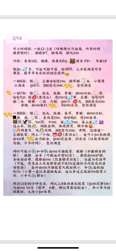 从其它地方看到的,加了QQ一个多礼拜,最近这两天约的。 没什么服务的,4/1 6/2,带点服务的 5/1 8/2 ,还 ...