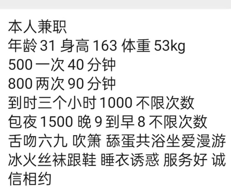 服务一流,奶子大,身材苗条,皮肤白嫩,服务好,关键特别骚,楼凤本人自己也是说好,喜欢的可以去试试 ...