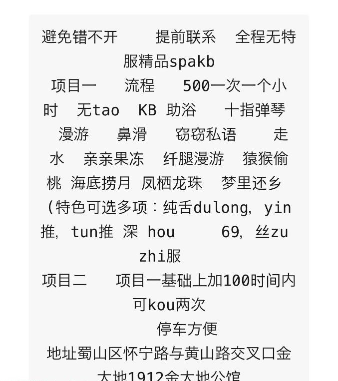 看论坛信息说服务态度好就去了 首先没有陪浴 服务的话 按摩 漫游 胸推 口都比较快 差不多几分钟 硬了直接带 ...