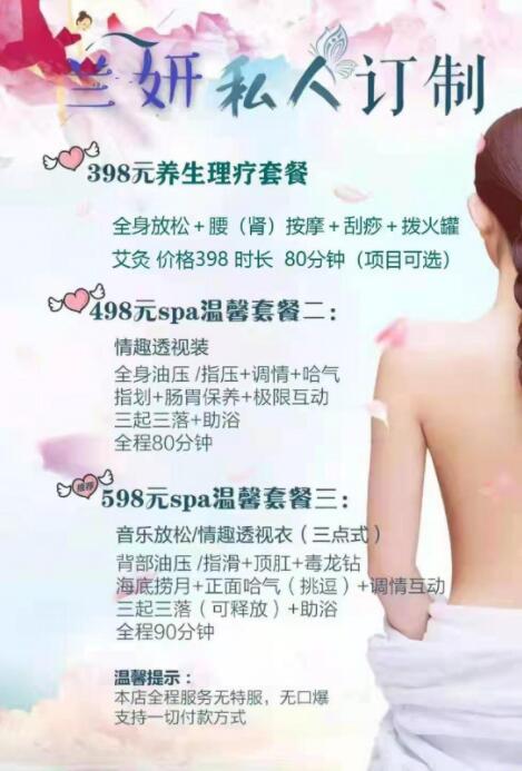 这个妹纸自己开有一家养生理疗店,之前学过养生理疗这块,手法娴熟,私下也可接spa小保健(妹纸不做大活) ...
