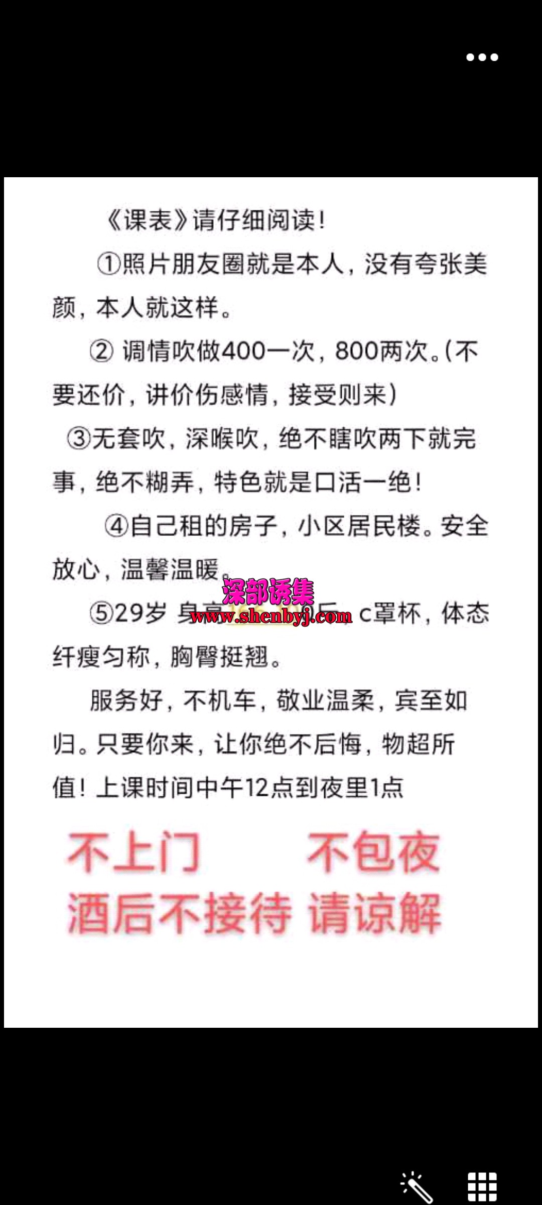 看到狼友发的,一直心里痒痒。终于抽时间去验证了一次。地址在棉纺路一个小区,到了之后指挥上电梯,会在电 ...