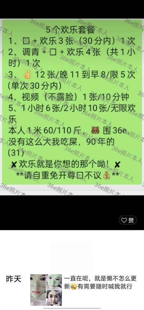 这个月到沈阳出差,打算好好玩一玩,就问群里朋友推荐,我这人不怎么看脸,喜欢服务好的,朋友就推荐了这位 ...