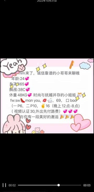 非常不错的一个小妹妹,挺开朗,热情的,刚见面没有着急做,我俩聊了一会天,感觉挺不错,完全没有刚见面的 ...
