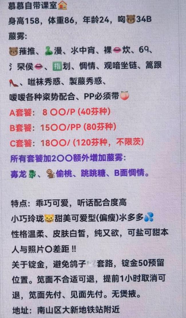 小姐姐非常安全可靠,要求现金支付,颜值也还算不错,身材非常好,服务也很细致,强烈推荐两小时不限次套餐 ...