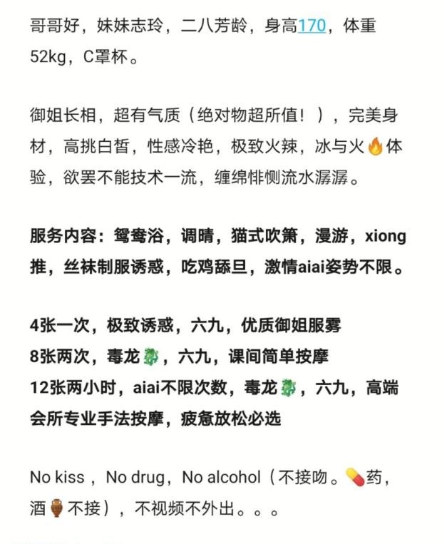 优点:性价比高,脸蛋7分,身材高挑胸大腰细,身材我给9.5分,服务态度很好,活好娴熟特别是那个舌头太厉害 ...