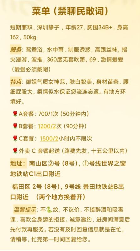 已经返食多次,服务很认真很周到,会所出身服务一流 (宝安这边的话感觉已经算顶级的了),之前也发过的, ...
