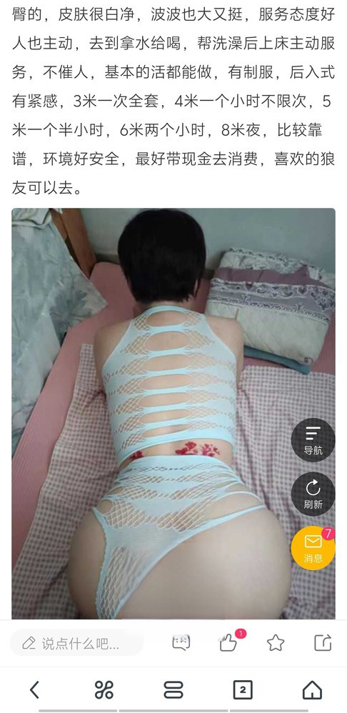 听朋友说是丰满型,真实的胸围大,待人很热情。聊天也主动,果断联系时间,坐地铁到岗顶,引导公寓楼上去。 ...