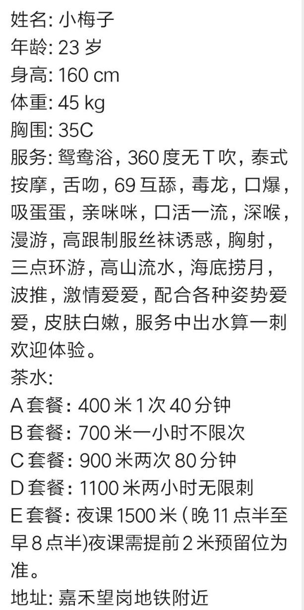 超级水嫩,服务不差,特别是口活相当不错,服务过程不催人,整体态度还是不错的,就是可能是最近才下海,整 ...