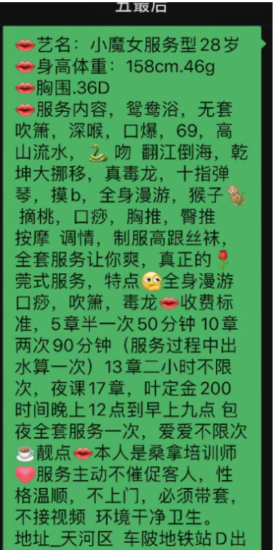 服务控的福利,进门看到大长腿加上穿着黑丝,简直不要太爱啦。加钱还可以有SM和角色扮演。 ...