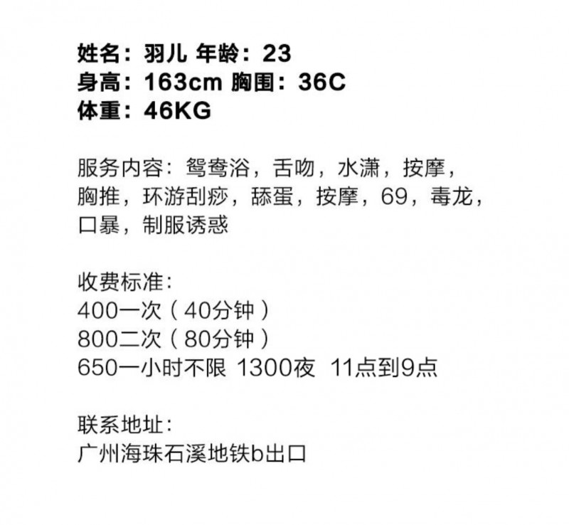 长相虽不是女神级别,算是小成熟。颜值耐看。待人态度好,之前好似在会所待过,服务挺杠杠的。身材高挑匀称 ...