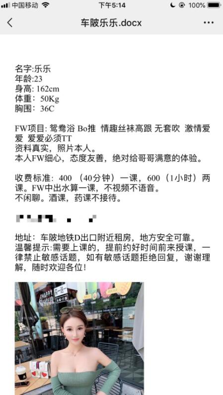 本人风骚热情,从事过正宗的莞式服务。主打服务类型,喜欢熟女/人妻和享受服务的靓仔们可联系她。另可提供 ...
