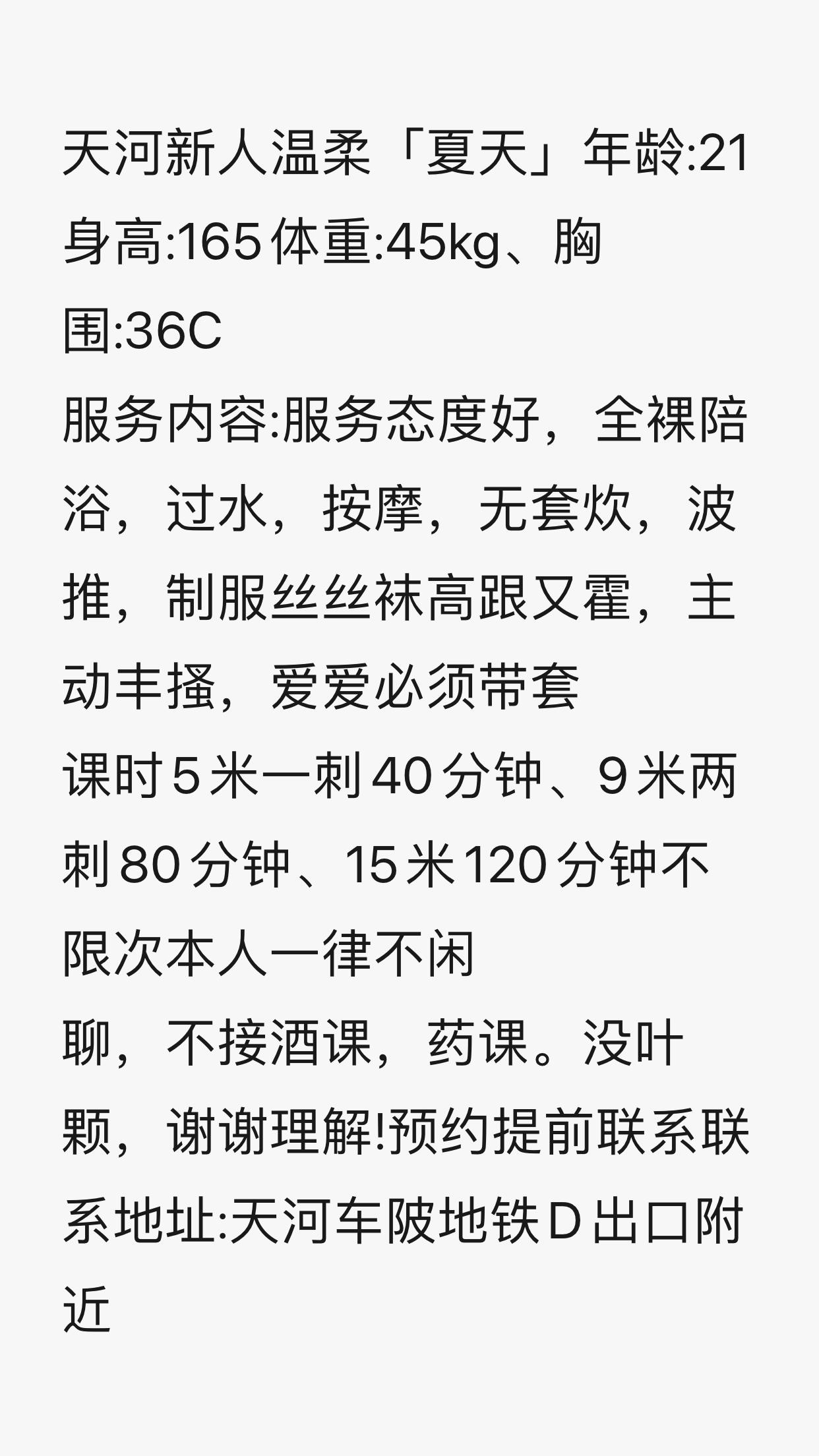 身材挺好,腿控福音,水也挺多的,也不催人。没啥服务 不过分都会配合。都有点小紧。 ...