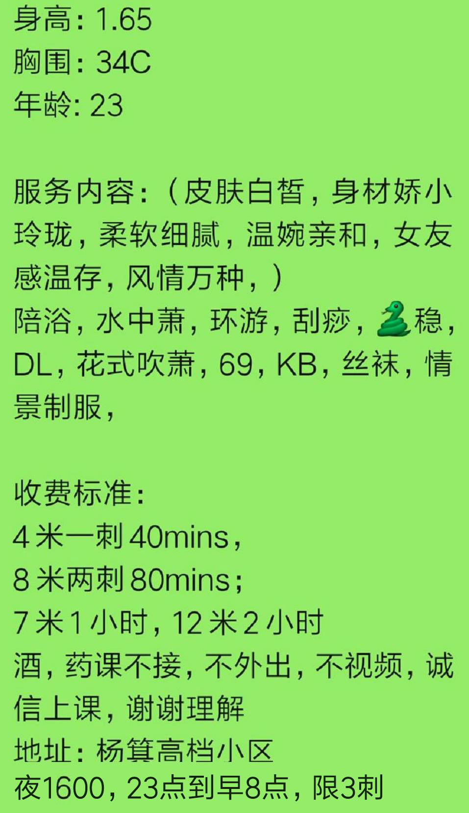 颜值小萌妹感多,身高168,身材比例苗条,小腿不错很长,没什么肚子肥肉。过程帮清洗,耐心对待。会换更换 ...